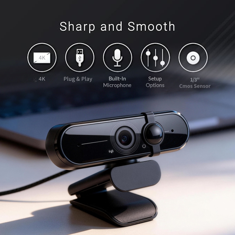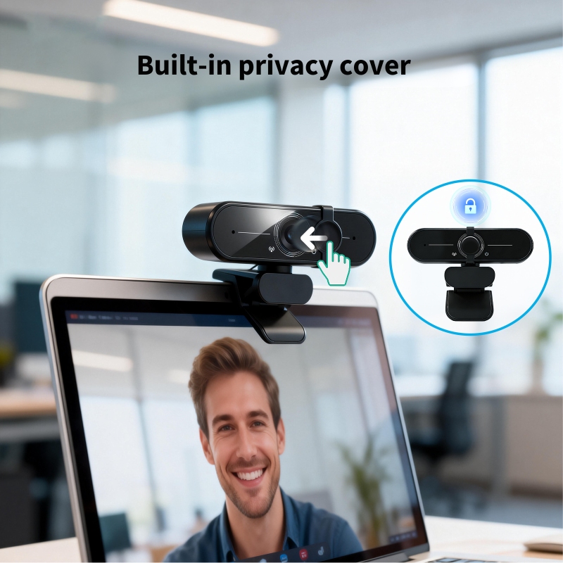 Security is built-in. The integrated privacy shutter slides effortlessly over the lens, giving you physical assurance that your camera is off. This feature is essential for home offices and secure corporate environments.